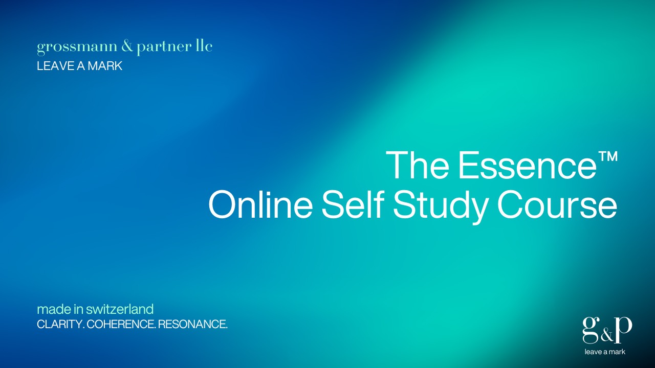 The Essence™ is a foundational practice that restores inner coherence, preparing leaders to engage more complex leadership and culture architectures without self-friction. Included is an open, lifelong credit of €963 applicable to future programs at grossmann & partner llc. The credit has no cash value and cannot be redeemed outside of our programs. It may be transferred to another person of your choice and cannot be combined with other credits.